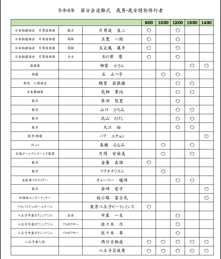 ⇒令和8年高尾山節分会追儺式特別修行者のご案内が発表されました!!